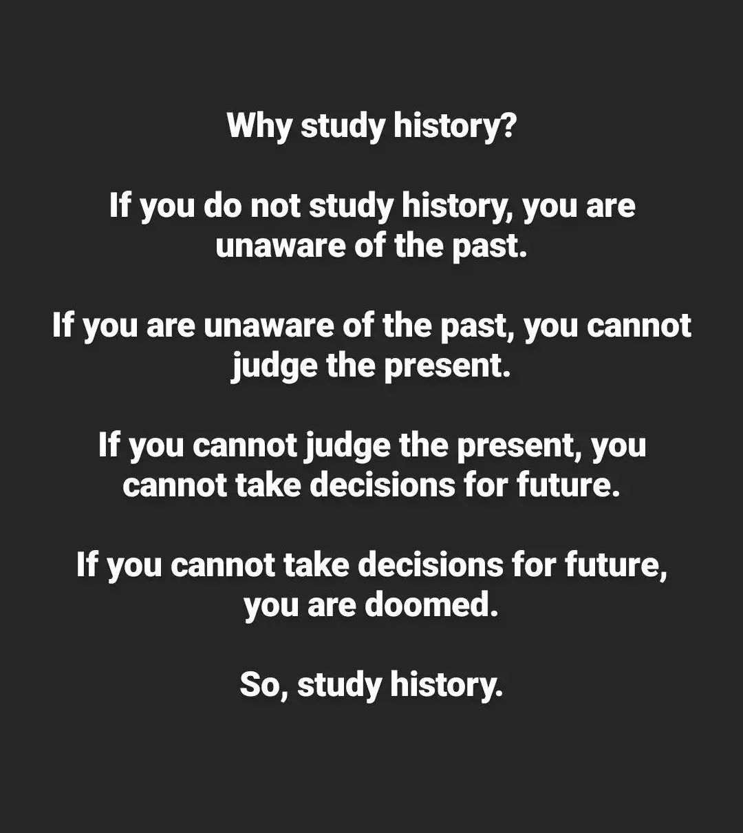 But yeah, the study of history and culture is so essential that I cannot think of where to begin. For a good ‘education’, it is surely essential to know history and culture of not just our own, but also of other peoples in the world.